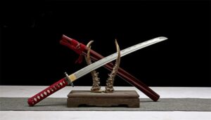 Wakizashi were traditionally worn by Japanese samurai with a katana as part of the daisho – the ”big sword” and ”little sword” pair. The wakizashi was the close-range blade, used when the samurai had to fight in confined spaces or when he needed a backup weapon. Wakizashi are shorter than katana, with a blade length ranging from 30 to 60 cm. They were often worn tucked into the belt with the edge up, but could also be worn as a belt around the waist. Wakizashi were made using the same methods as katana, and their designs were often similar. However, because they were not intended for outdoor use, wakizashi tended to be less ornate than their longer counterparts. Wakizashi fell into disuse after the Meiji Restoration in 1868, when the carrying of swords was banned. However, they remain an important part of Japanese culture, and many families still have inherited wakizashi that are passed down from generation to generation.
